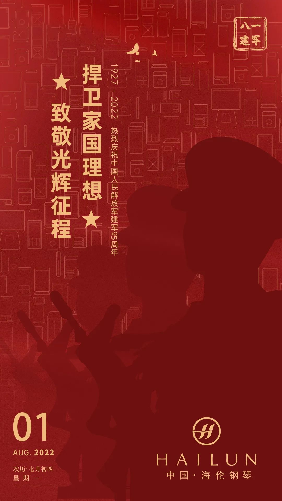 1927-2022 歲月彈指間 號聲嘹亮 贊歌依然 初心,是一生堅守,是一路護航 身披戎裝的鋒芒,是赤膽忠心的力量 因為你們,幸福感如此清晰 感謝你們的守護 用熱血征程,換一世萬里晴空