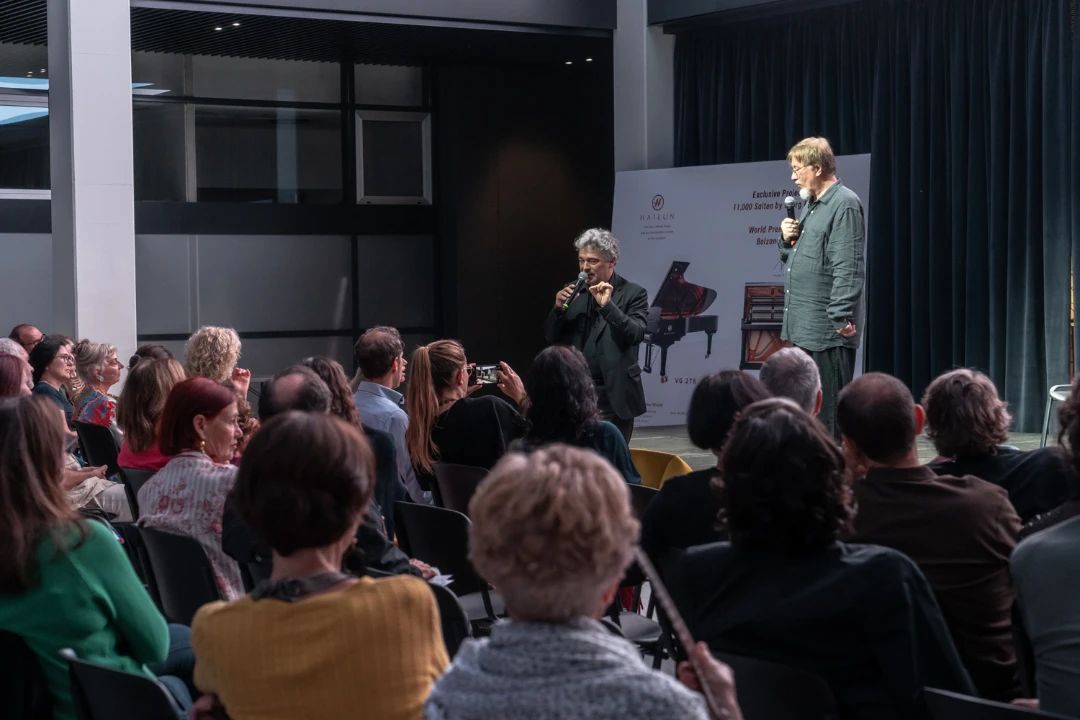 在記者發(fā)布會(huì)和聽眾分享會(huì)上,奧地利著名作曲家格奧爾格·弗里德里希·哈斯感謝海倫鋼琴為此次盛會(huì)作出的貢獻(xiàn),并邀請(qǐng)海倫鋼琴高級(jí)技師康綠新先生上臺(tái)再次表示感謝,他對(duì)海倫鋼琴技術(shù)團(tuán)隊(duì)的專業(yè)技術(shù)表示高度贊賞,以至于想帶海倫技術(shù)團(tuán)隊(duì)去巡演。